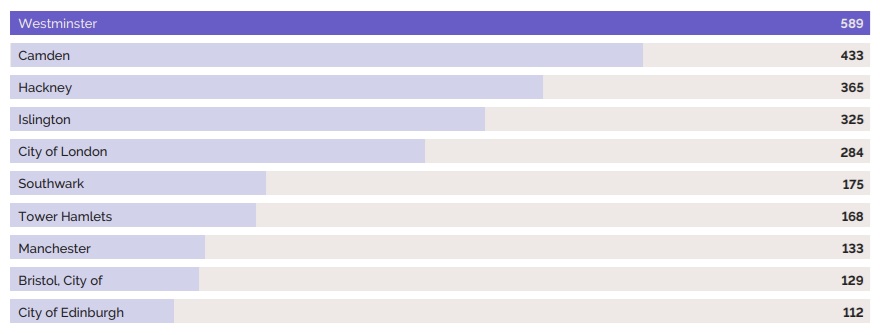 While London accounts for half of creative industries HGPFs with 2,942 firms, the report said other regions are home to significant numbers including 362 in the south west and, when looking at the top local authorities by number of creative industries HGPFs, Bristol is in 9th place with 129.